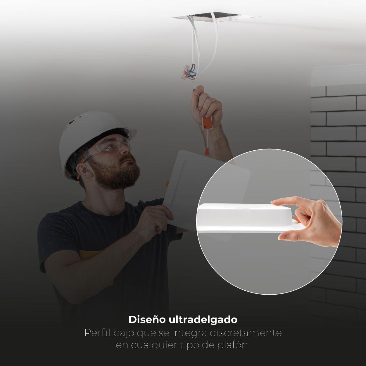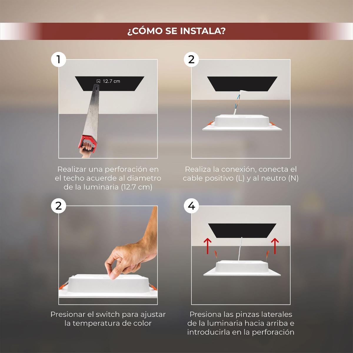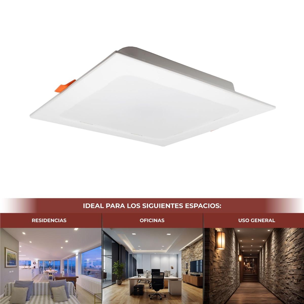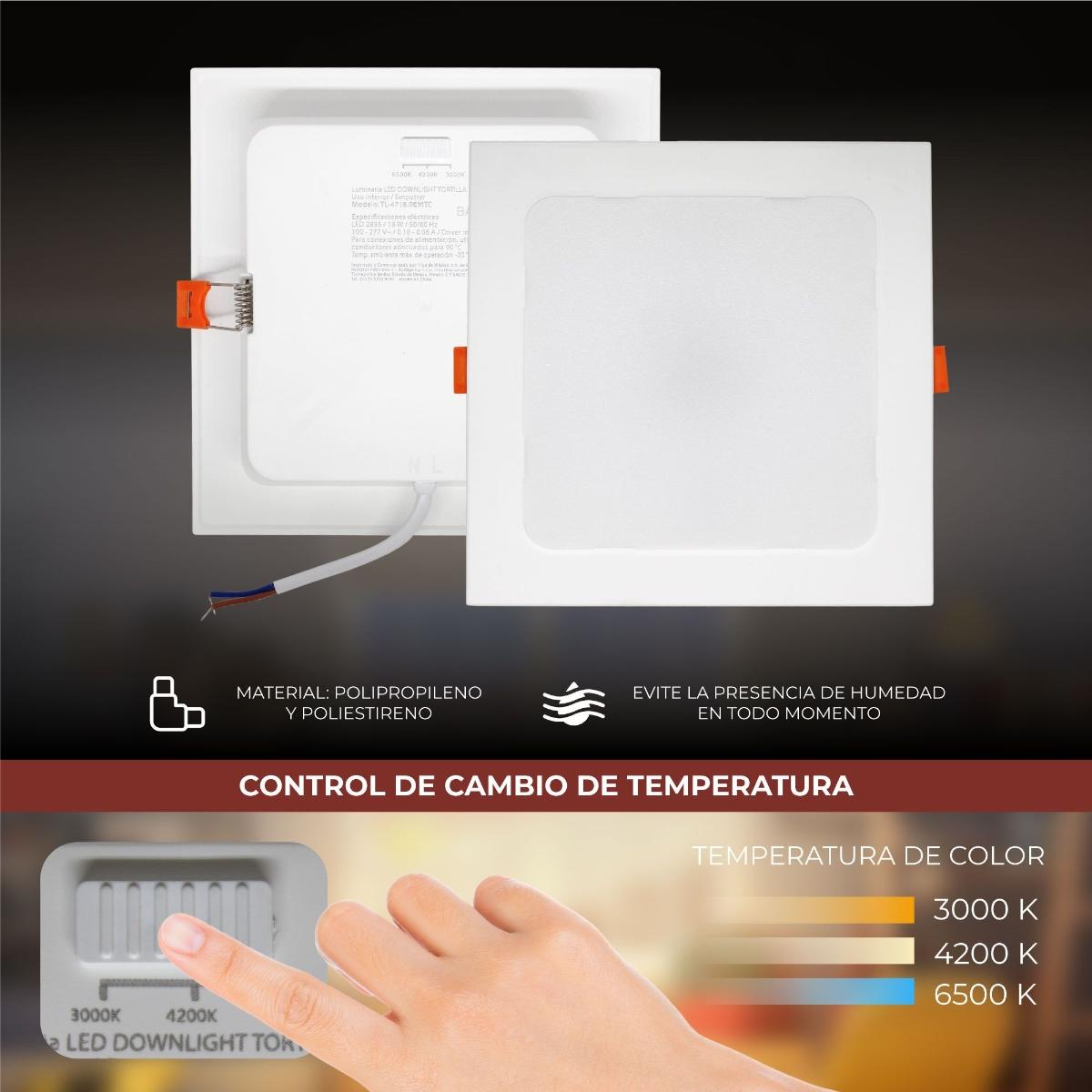 LAMPARA LED CUADRADA TIPO DOWNLIGHT DE EMPOTRAR 18W, 3 TEMPERATURAS DE COLOR 3 000 K, 4 200 K y 6 500 K, USO INTERIOR