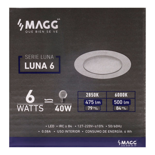 LUMINARIO LUNA 6 4" 6W LUZ FRÍA BLANCO