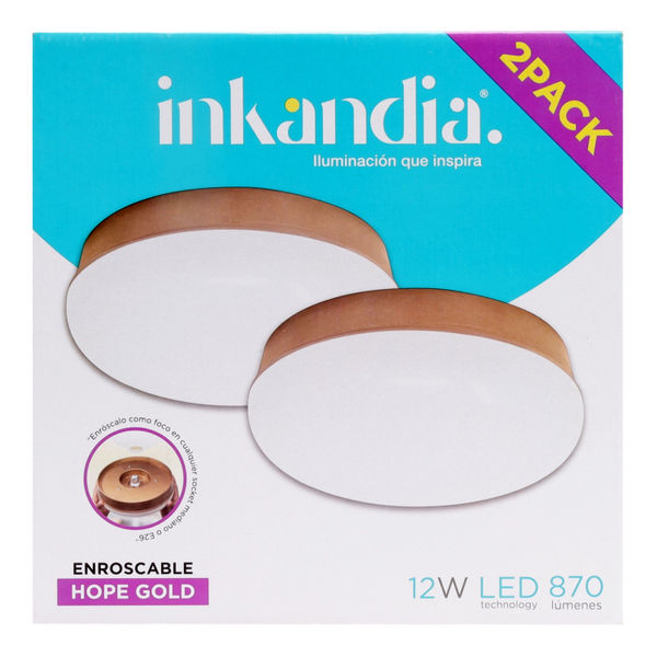 LÁMPARA DE TECHO ENROSCABLE LED 12 WATTS 9.5 X 25 CM DORADO 2 PIEZAS