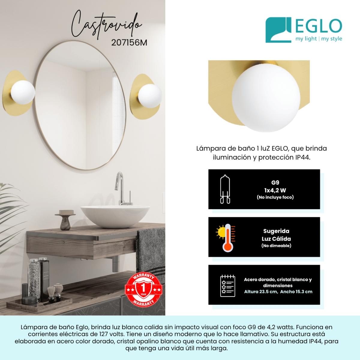LUMINARIO DE BAÑO CASTROVIDO 1 LUZ