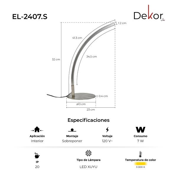 LÁMPARA DE ESCRITORIO LED 7W, LUZ CÁLIDA, DISEÑO MODERNO, IDEAL PARA LECTURA, RECAMARA, SALA, SATIN