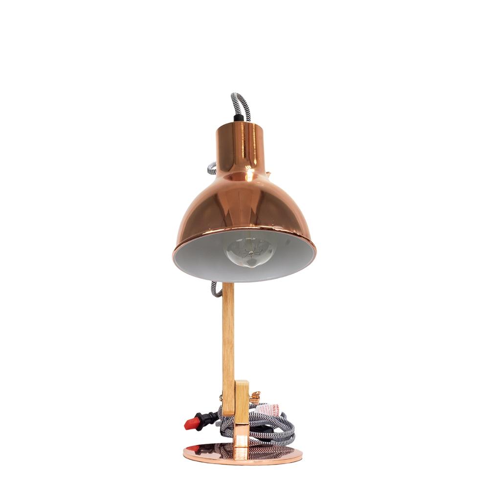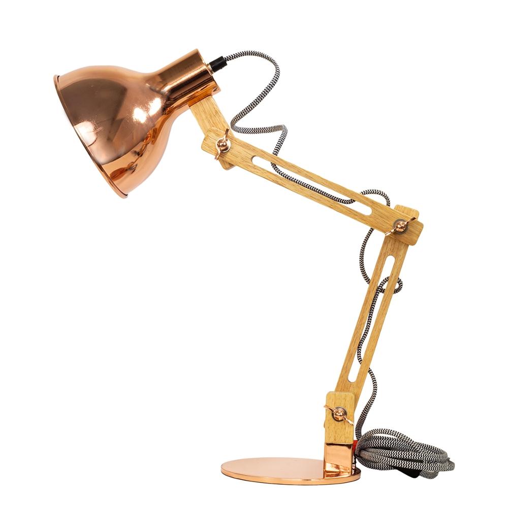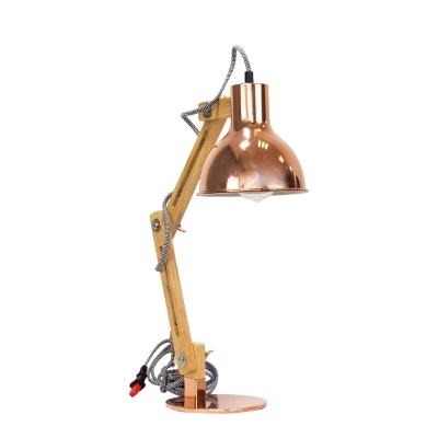 LAMPARA DE MESA AJUSTABLE MADERA PANTALLA Y BASE BRONCE