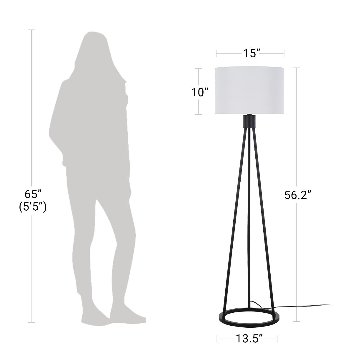 LÁMPARA DE PIE HIGGINS DE 143 CM CON TRÍPODE NEGRO Y BASE REDONDA