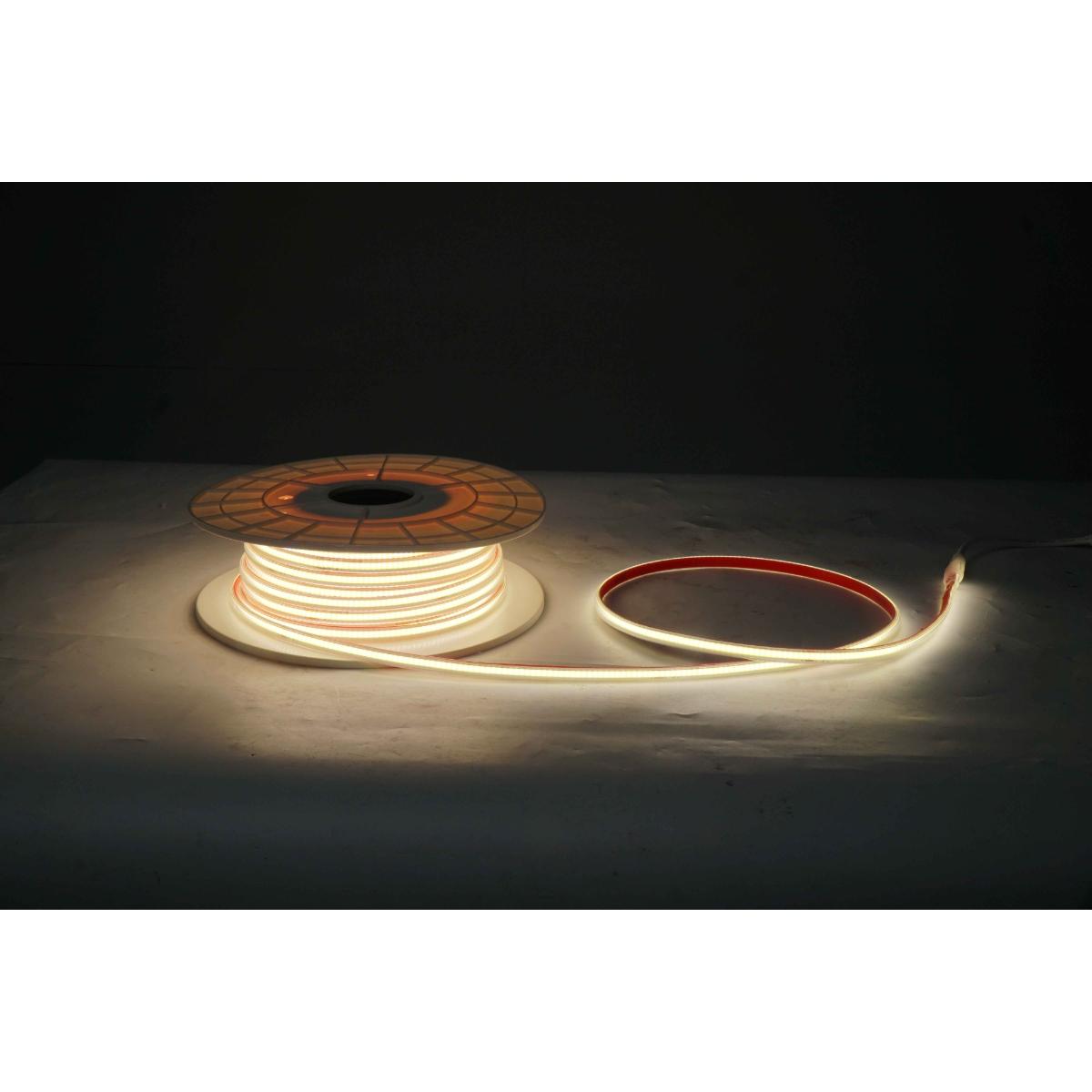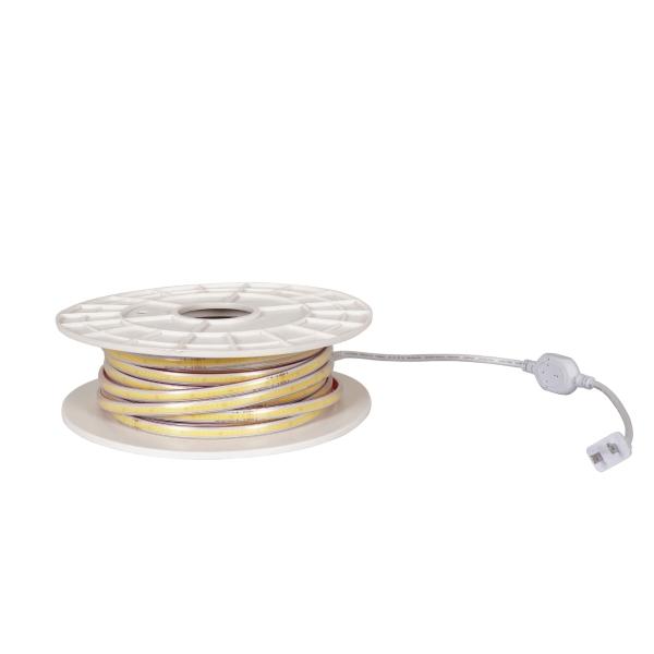 TIRA LED 25M TECNOLOGIA COB 2700K 120V IP65 PARA EXTERIOR LUZ CALIDA PLUG & PLAY