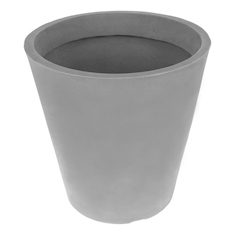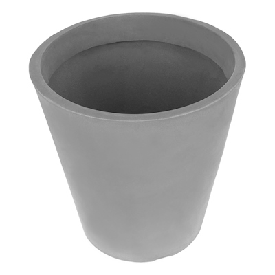 Maceta Edenika, útil para colocar plantas en los interiores o exteriores del hogar. Tiene forma cónica con las medidas 62.5 x 61.5 cm. Fabricada en resina polimérica 100% reciclable que no pierde su color gris con apariencia de piedra.