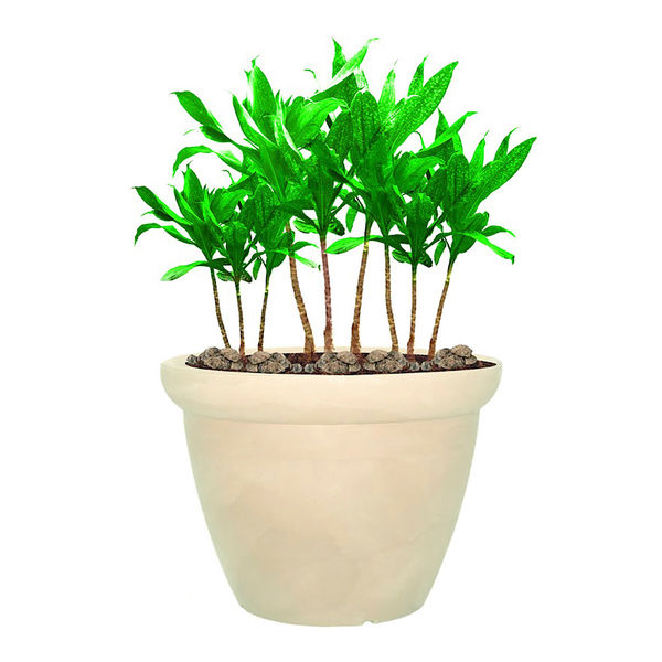 Macetón elegante y moderno fabricado en proceso rotomoldeo con resinas plásticas que ofrecen estructura sólida, rígida, ligera y fácil de maniobrar sin riesgo de rotura por traslado, ideal para lugares amplios; hoteles, plazas comerciales y en general sitios que requieren macetones resistentes a; lluvia, polvo temperaturas extremas (contiene materiales uv) evitando decoloración excesiva y conservando apariencia natural tono ivory o cantera marfil.