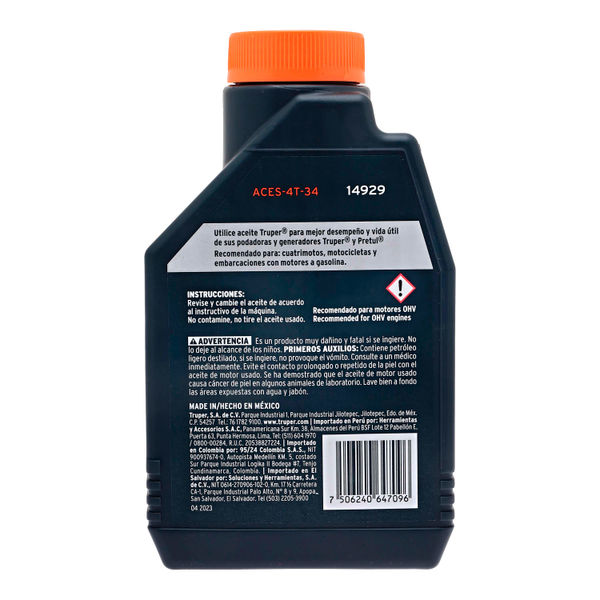 ACEITE SEMISINTÉTICO 4 TIEMPOS, 4O0 ML TRUPER