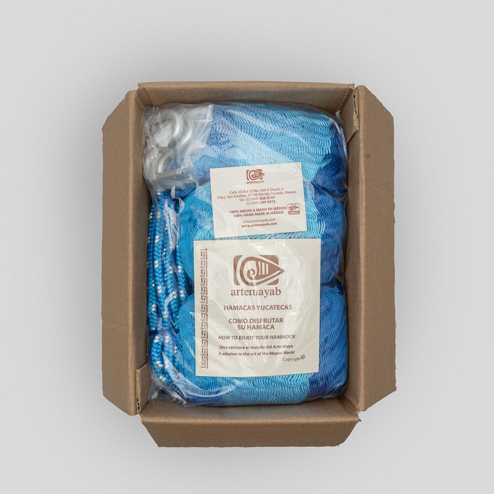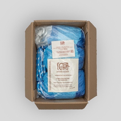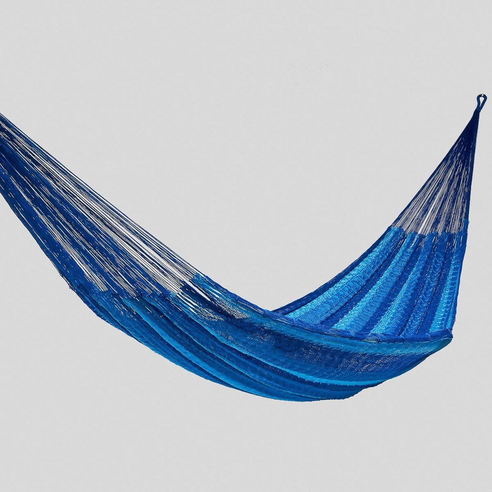 HAMACA MAYA NYLON TAMAÑO KING MODELO CINTAS AZULES
