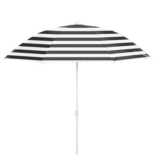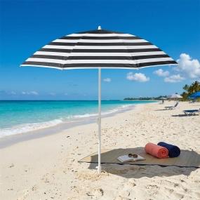 Disfruta de tus días de playa con la sombrilla de playa de 6 pies en elegante diseño a rayas en blanco y negro. Su estructura robusta garantiza estabilidad incluso en condiciones de viento, mientras que su fácil instalación te permite disfrutar del sol en cuestión de minutos.