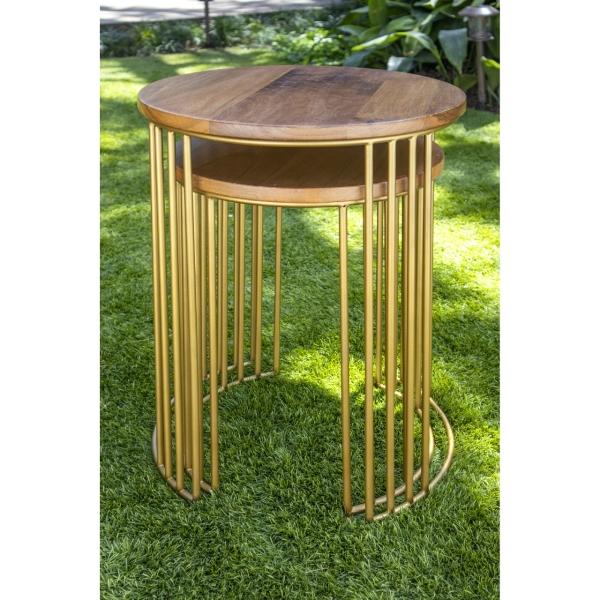 SET DE DOS MESAS DECORATIVAS DE METAL Y MADERA