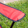 El diseño plegable en tono rojo intenso aporta comodidad inmediata en cualquier salida, gracias a su asiento amplio y reposabrazos con portavasos. Su bolsa a juego facilita cargarla y guardarla, convirtiéndola en una aliada práctica al aire libre.