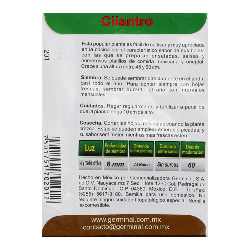 SEMILLA DE CILANTRO DE MACOLLO PARA SIEMBRA 2 GR GERMINAL