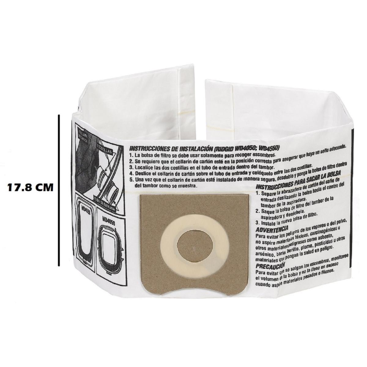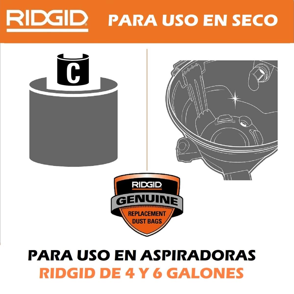 BOLSAS PARA POLVO AJUSTA EN ASPIRADORAS RIDGID DE 4 Y 6 GALONES