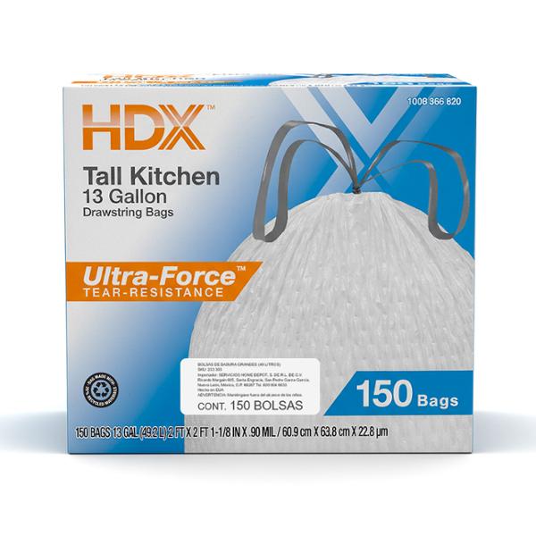 BOLSAS DE BASURA DE COCINA HDX FLEX 49 L BLANCAS 150PZ