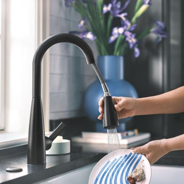 LLAVE MEZCLADORA MONOMANDO RETRÁCTIL HAELYN 39.5 X 12 X 19.5 CM MATE MOEN