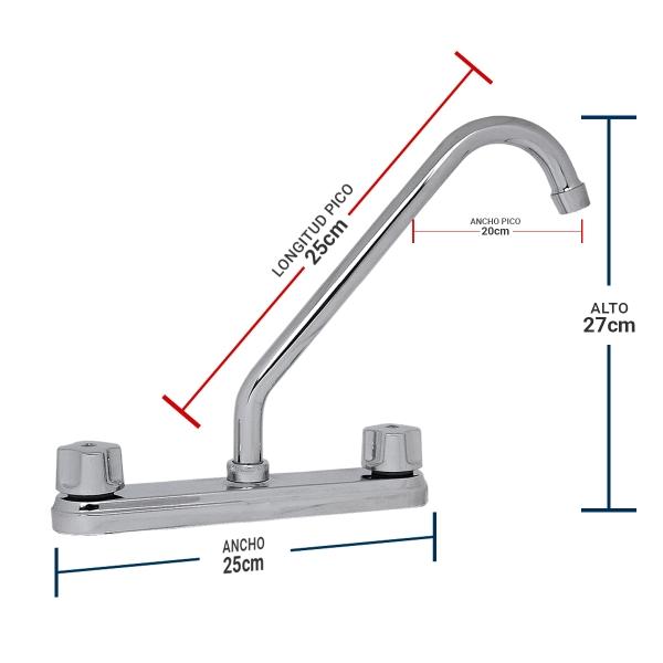 LLAVE MEZCLADORA PARA FREGADERO DE 8 PULGADAS BRILLANTE RUGO