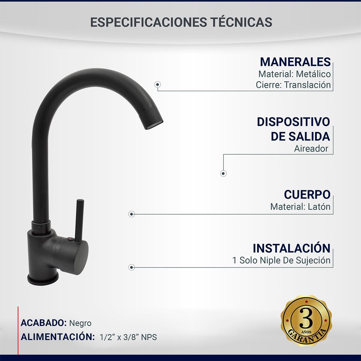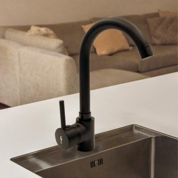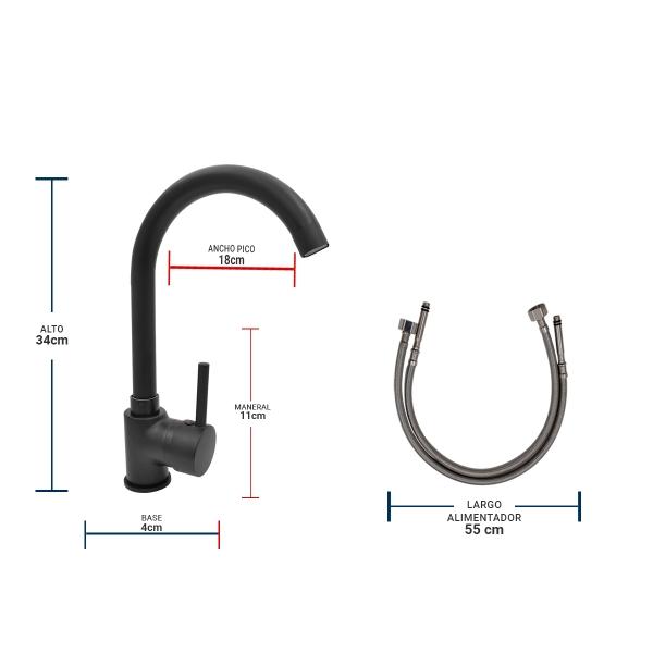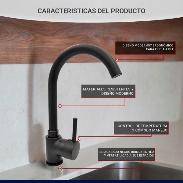 LLAVE MEZCLADORA MONOMANDO DE COCINA 29 X 4.5 X 19 CM NEGRO MATE RUGO
