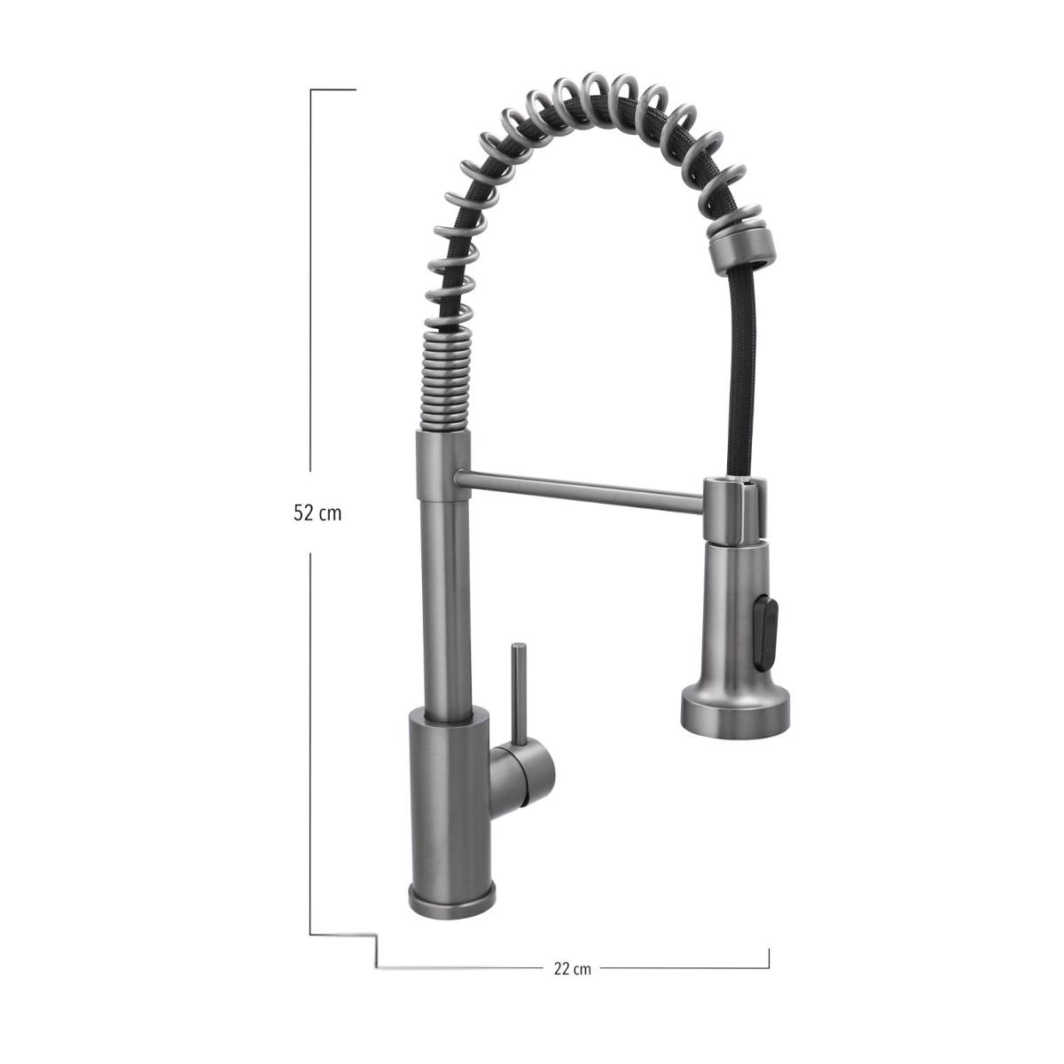 MONOMANDO PARA COCINA COLOR GRAFITO CUERPO DE ACERO INOXIDABLE RETRACTIL