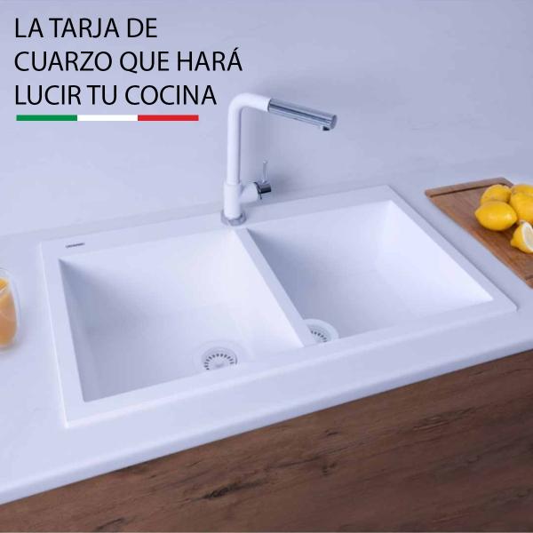 TARJA DE CUARZO MODELO DUE MEDIA COLOR BLANCO CONTRA CANASTA BLANCA 86X51X20