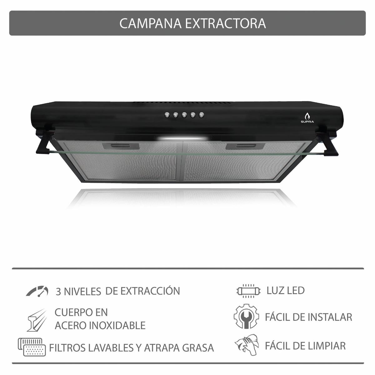 COMBO DOPPIO PARRILLA Y CAMPANA SUPRA 60CM DOPPIO NEGRO