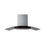 Combo de parrilla a gas 76 cm de cristal templado negro con detalle en acero inoxidable con triple flama y 5 zonas de cocción para que cocines rápido, fácil y seguro y campana decorativa midea de pared 90 cm de acero inoxidable y vidrio curvo ahumado.