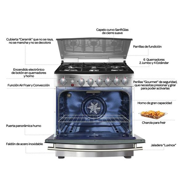 ESTUFA DE PISO KOBLENZ 76 CM CON AIR FRYER MODELO LISBOA