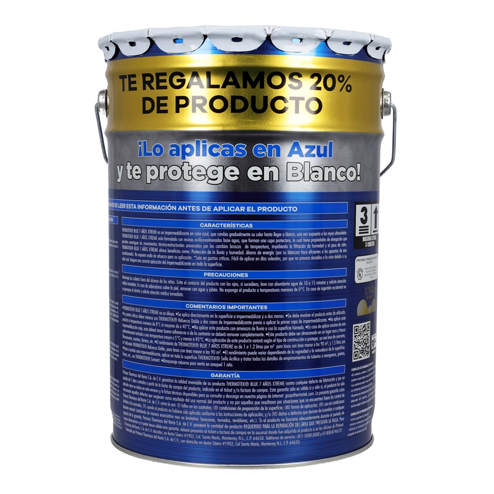 IMPERMEABILIZANTE ACRÍLICO FIBRATADO FOTOSENSIBLE BLUE XTREME 7 AÑOS AZUL 22.8 L