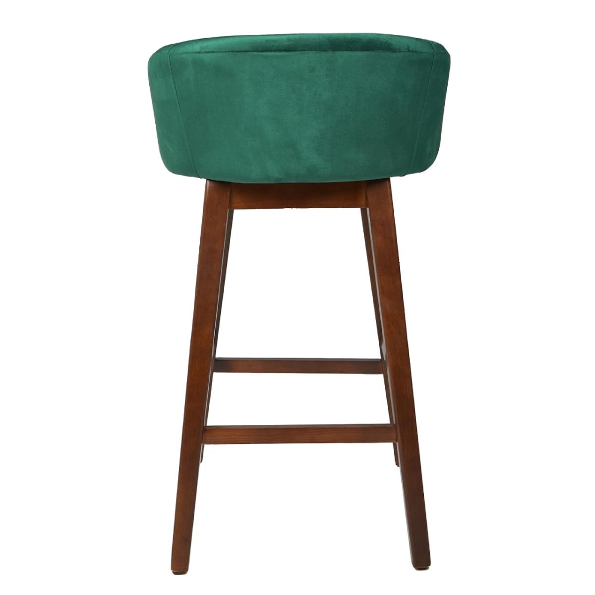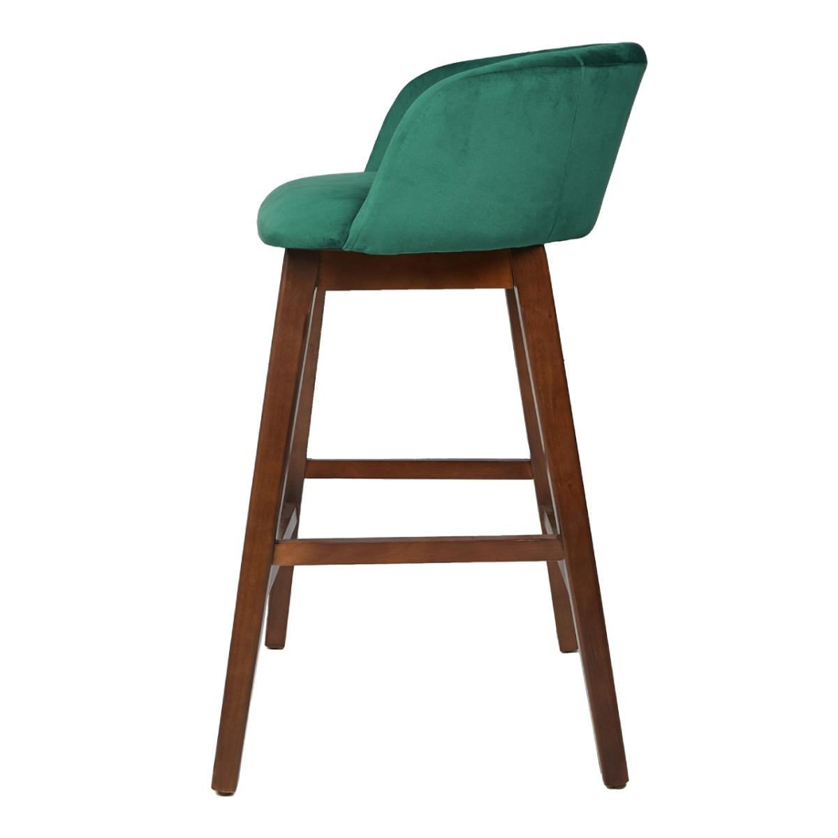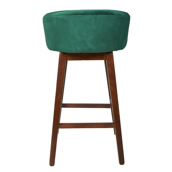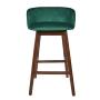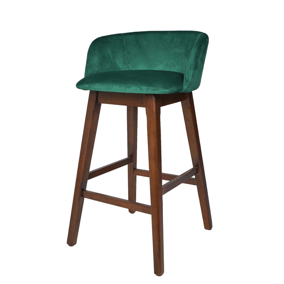 BANCO ALTO CON ASIENTO TAPIZADO EN TERCIOPELO VERDE. ESTRUCTURA DE MADERA