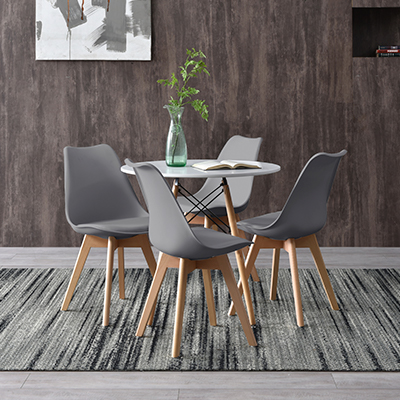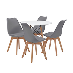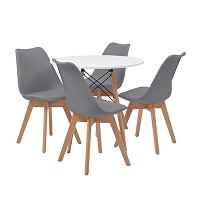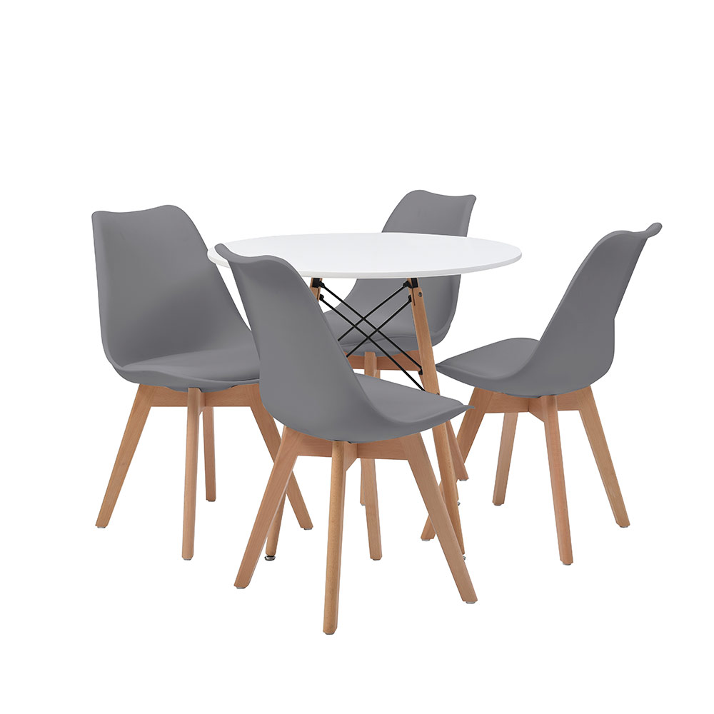 COMEDOR CHAD CON 4 SILLAS HELSINKI COLOR BLANCO Y GRIS