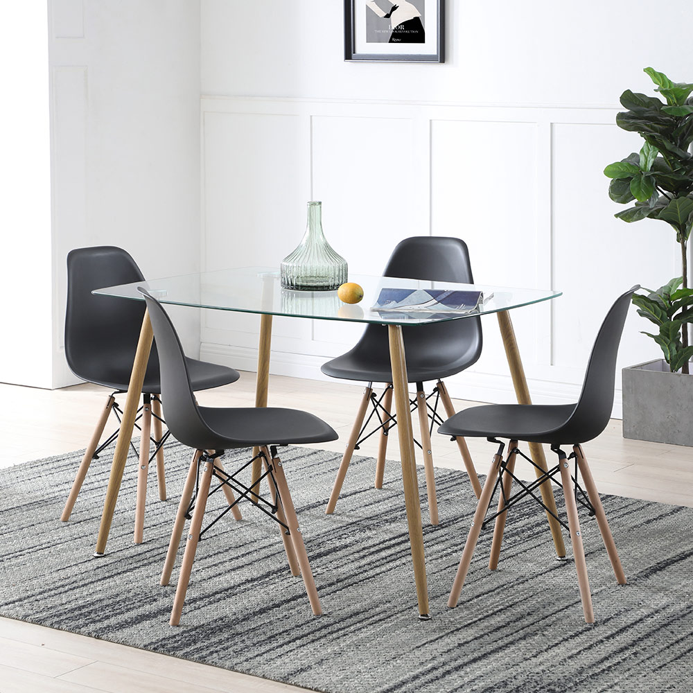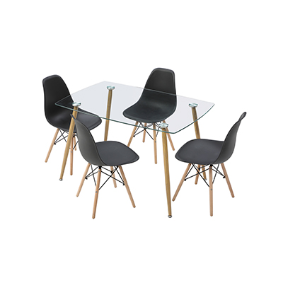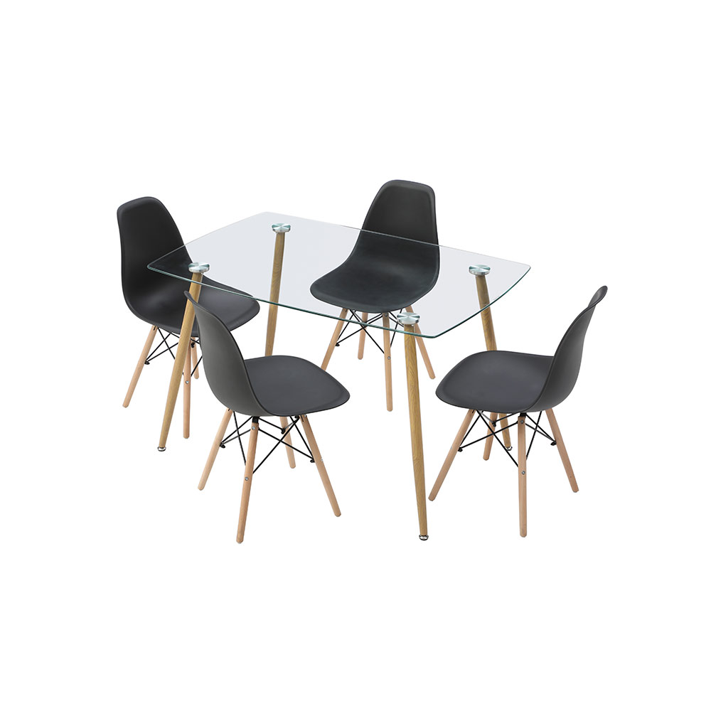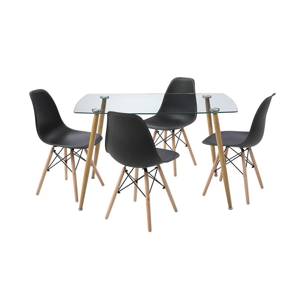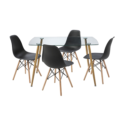 COMEDOR KULT CON 4 SILLAS OSLO COLOR CRISTAL Y NEGRO
