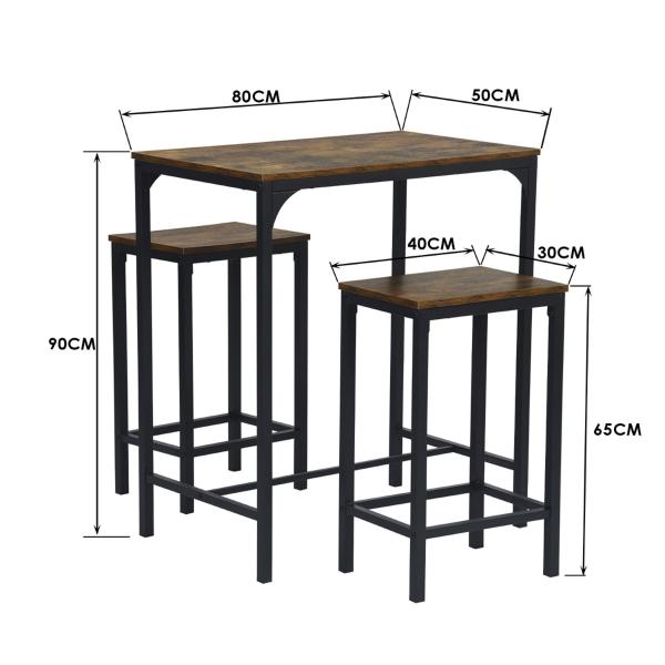 MESA DE RECTÁNGULO BAR CON 2 BANCOS VINTAGE