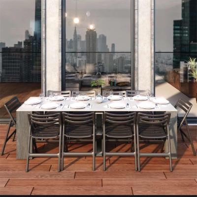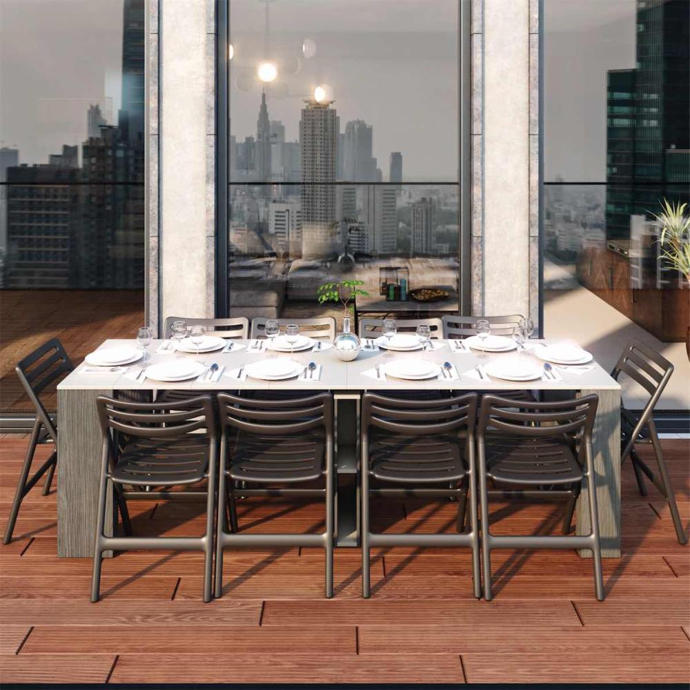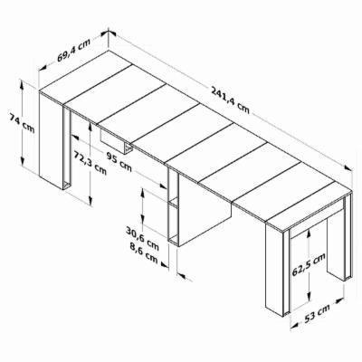 MESA EXTENSIBLE - NIZA, DE CONSOLA A COMEDOR, SE EXPANDE POR ETAPAS, GUARDA LAS CUBIERTAS EN LAS PATAS – COLOR GRAFITO/GRIS
