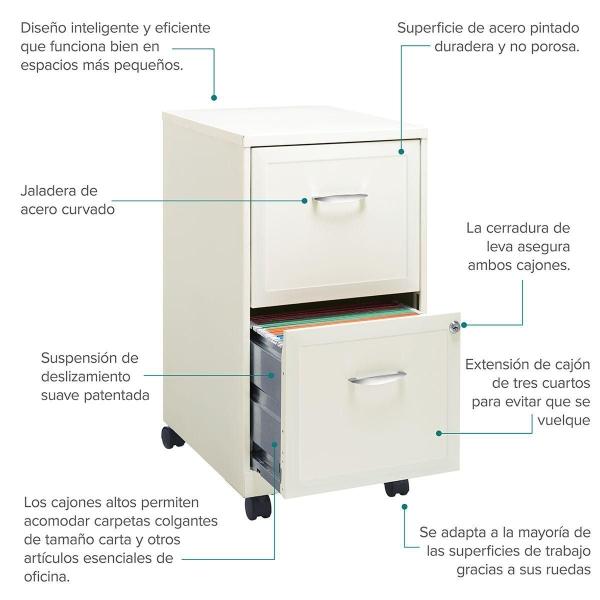 ARCHIVERO METALICO 2 CAJONES CARTA, COLOR BLANCO, CON RUEDAS