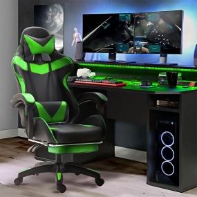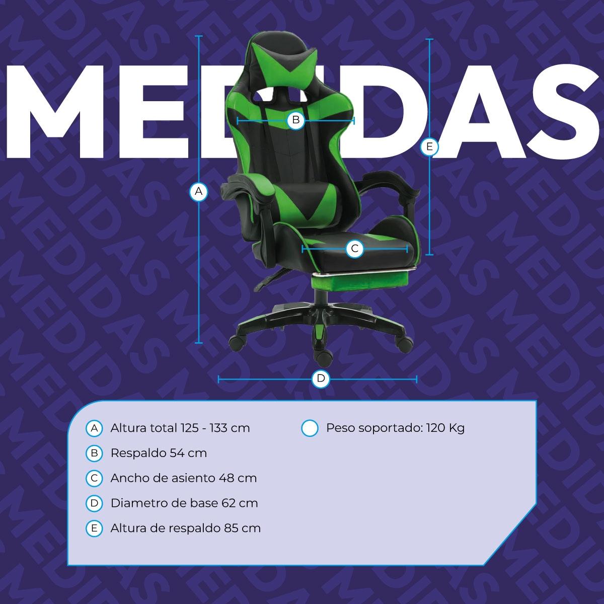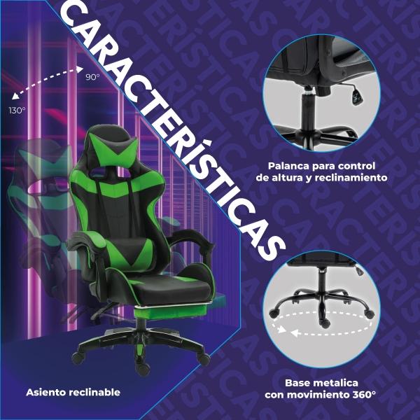 Nuestra silla gamer es la elección ideal para jugadores exigentes. Cuenta con un reposacabeza cómodo que brinda un soporte óptimo para tu cabeza y cuello. Los reposabrazos acolchados te permiten mantener una postura relajada durante tus largas horas de juego. El soporte lumbar incorporado te ayuda a mantener una posición ergonómica y cuidar de tu salud. El respaldo es reclinable con una inclinación de hasta 60°, permitiéndote encontrar la posición perfecta para tu comodidad. Además, el reposapiés ajustable es perfecto para descansar tus pies cuando lo necesites. Con una capacidad de carga de hasta 120 kg, esta silla es resistente y duradera. Además, su cubierta de pvc de alta calidad es fácil de limpiar y brinda una apariencia moderna. ¡eleva tu experiencia de gaming con nuestra silla gamer de primera calidad y disfruta de la comodidad y estilo que mereces!
