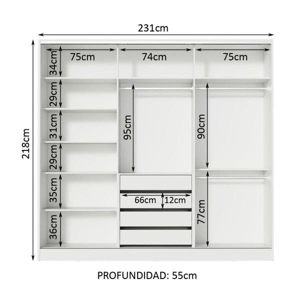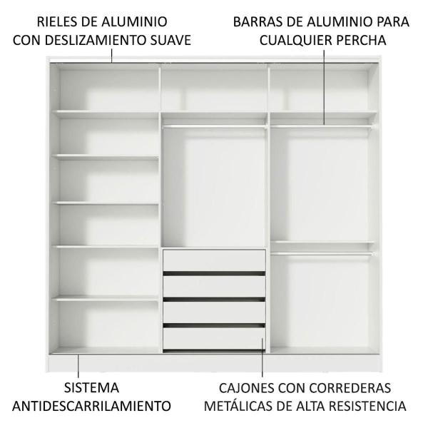 ROPERO CLÓSET MADESA ROYALE 3 PUERTAS 2 ESPEJO BN