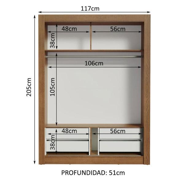 ROPERO MADESA DALLAS PLUS 2 PUERTAS CORREDIZAS 4C