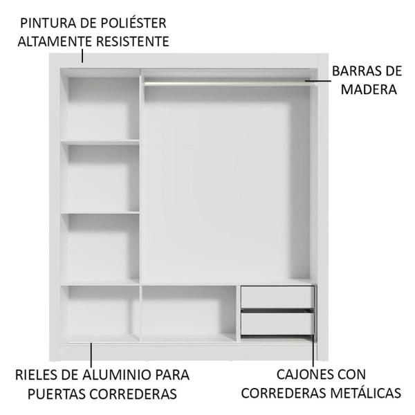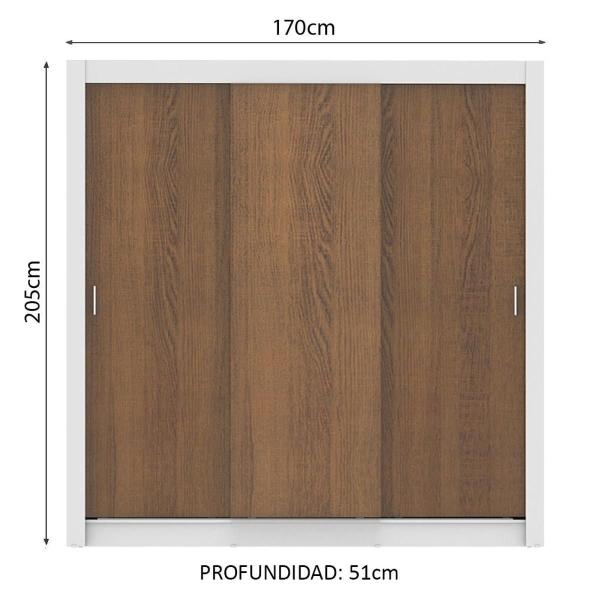 ROPERO MADESA LYON 3 PUERTAS CORREDIZAS 2 CAJON BLANCO