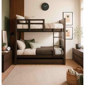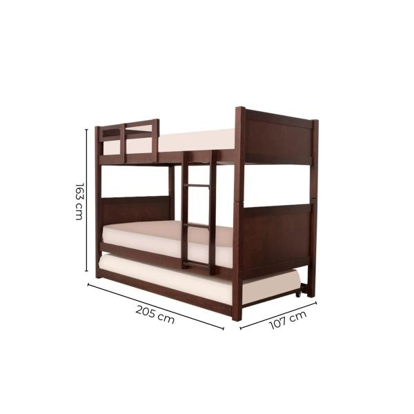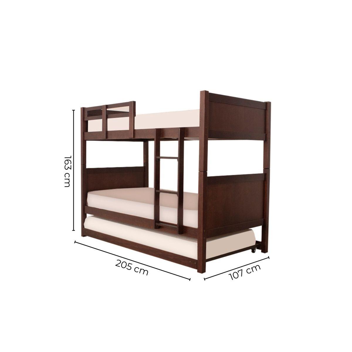 LITERA PARA 3 CAMAS INDIVIDUALES COLOR NOGAL - MADERA NATURAL