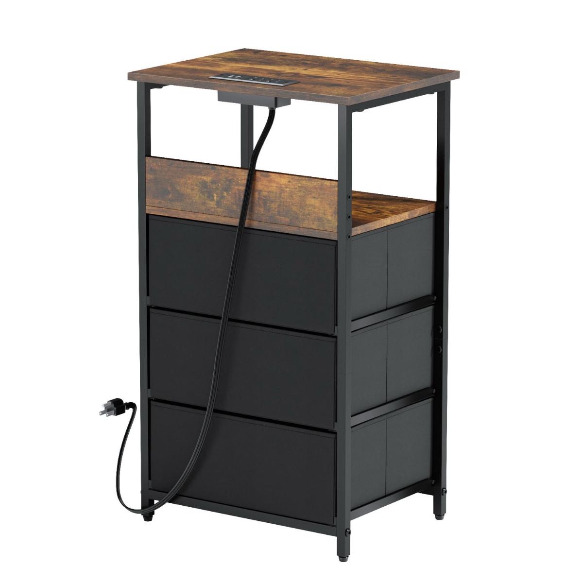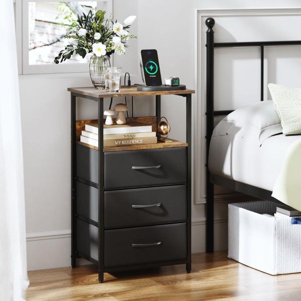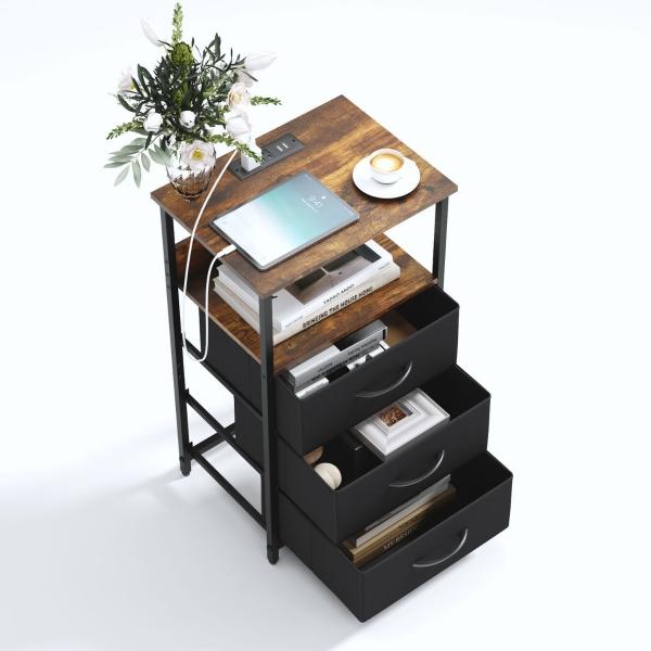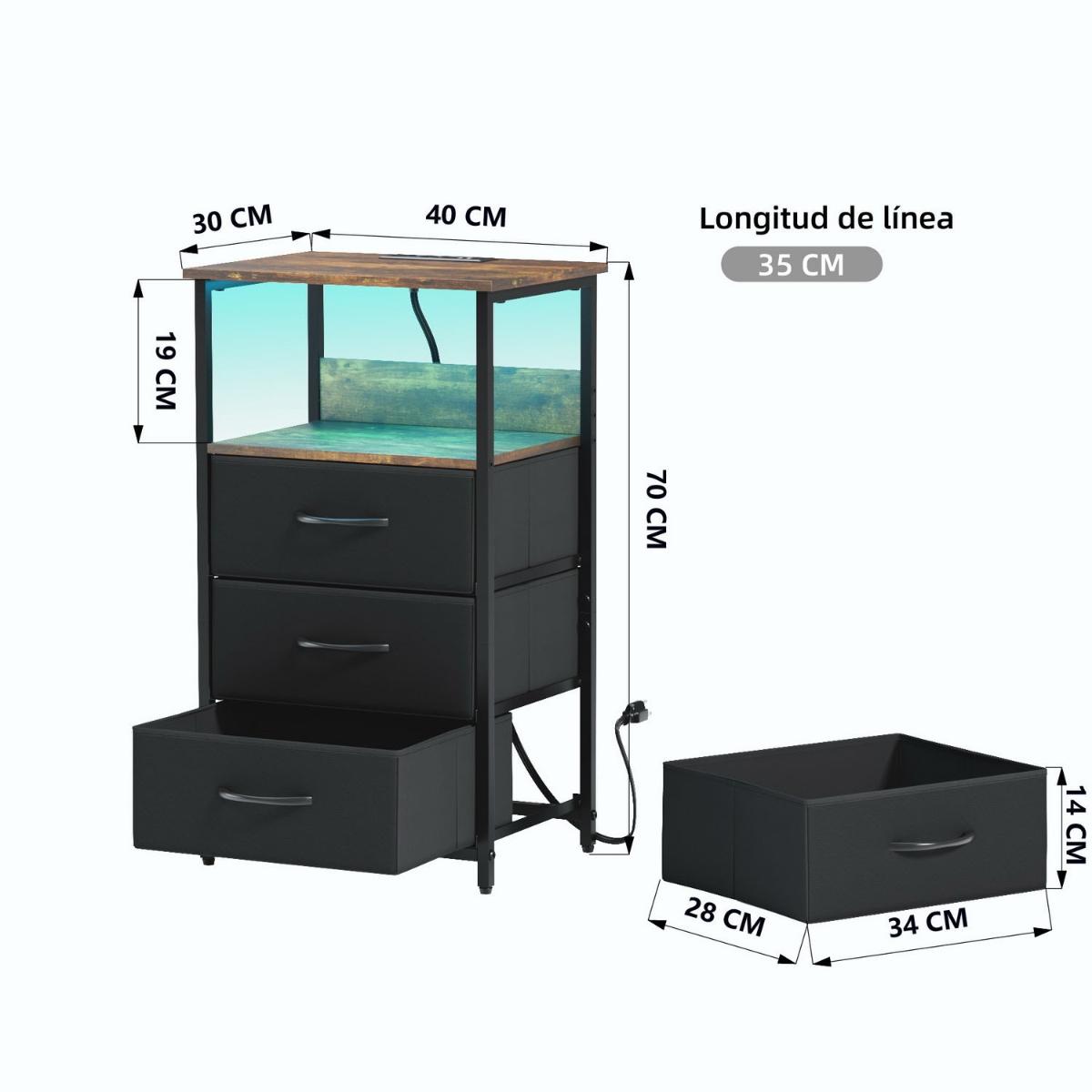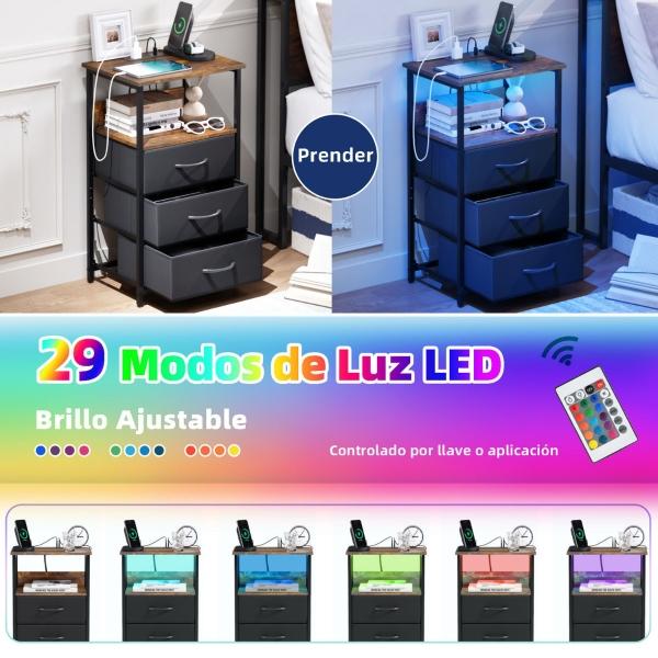 MESITAS DE NOCHE CON LUZ LED Y ENCHUFES CAFÉ VINTAGE