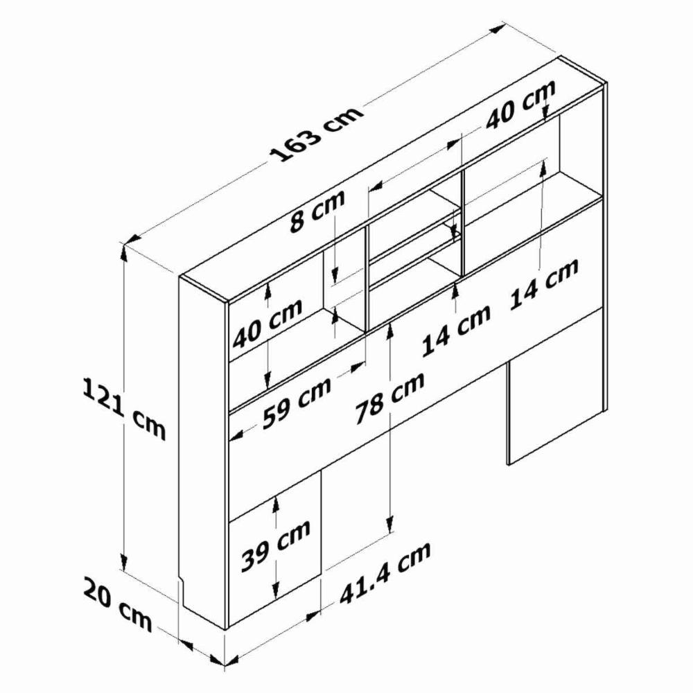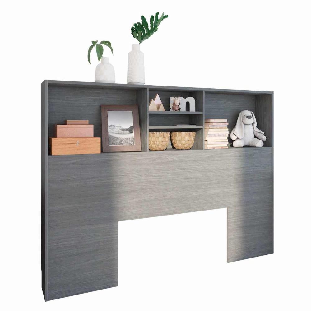 CABECERA LIBRERO - BARI, ORGANIZADOR SUPERIOR CON REPISAS, DISEÑO FUNCIONAL Y ESTILO MODERNO - COLOR GRAFITO
