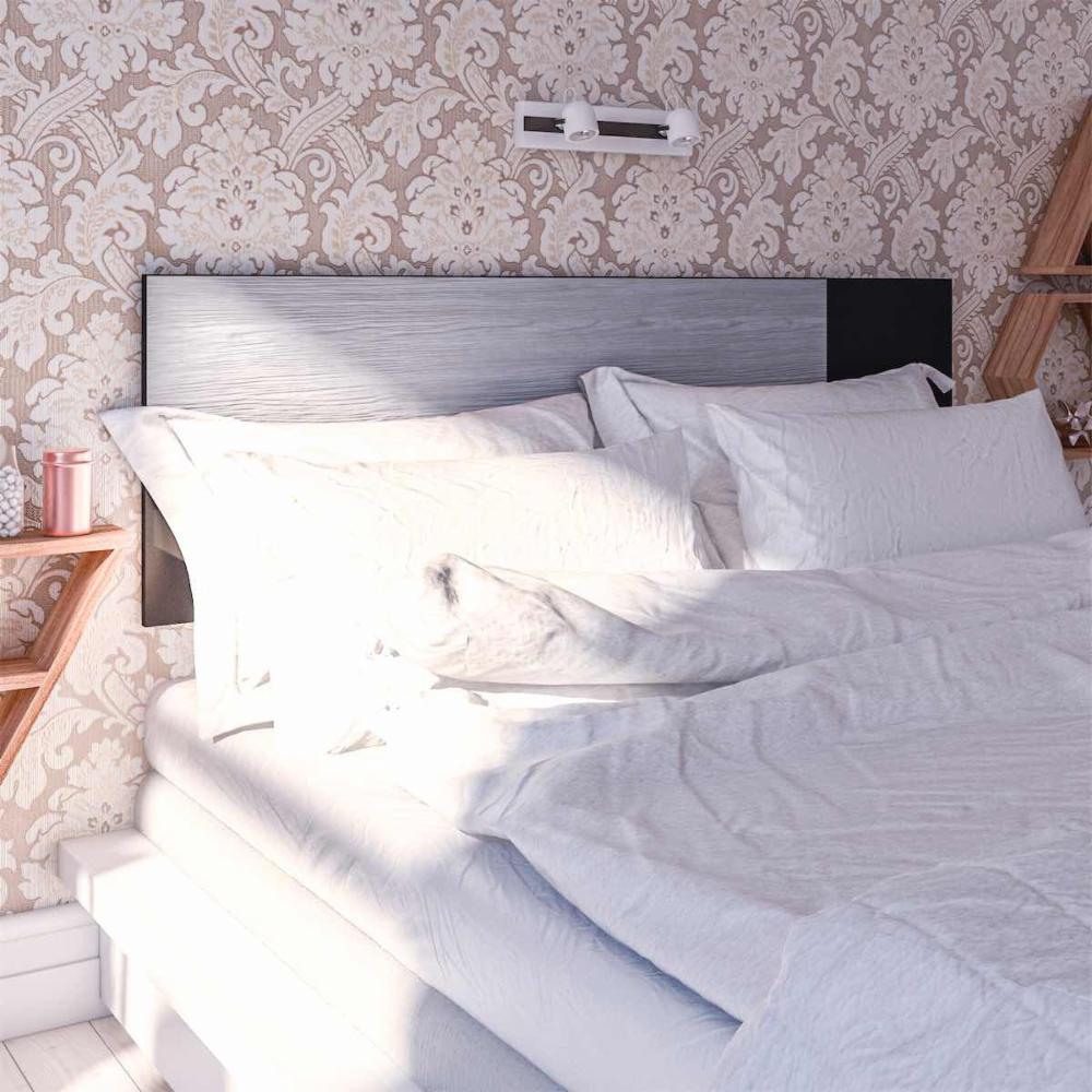 CABECERA FLOTANTE QUEEN - PALMA, MODERNA Y FUNCIONAL, FÁCIL DE INSTALAR Y COMPATIBLE CON CAMA MATRIMONIAL Y QUEEN - COLOR GRIS/NEGRO