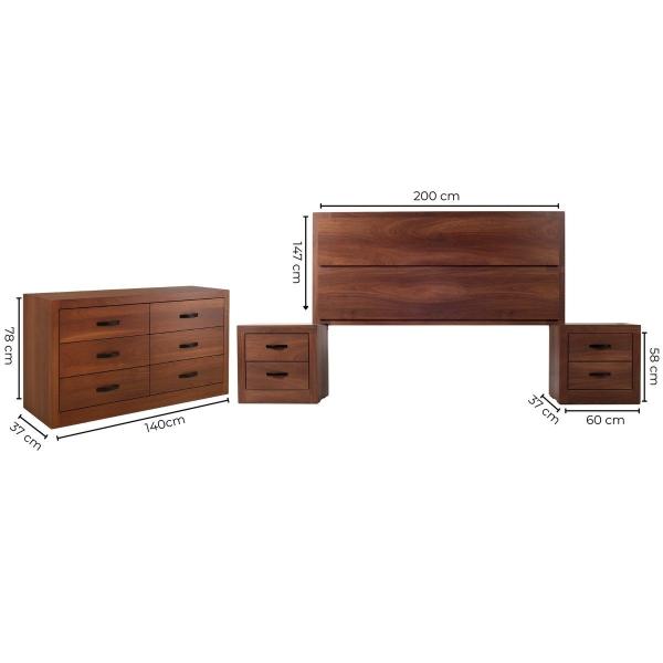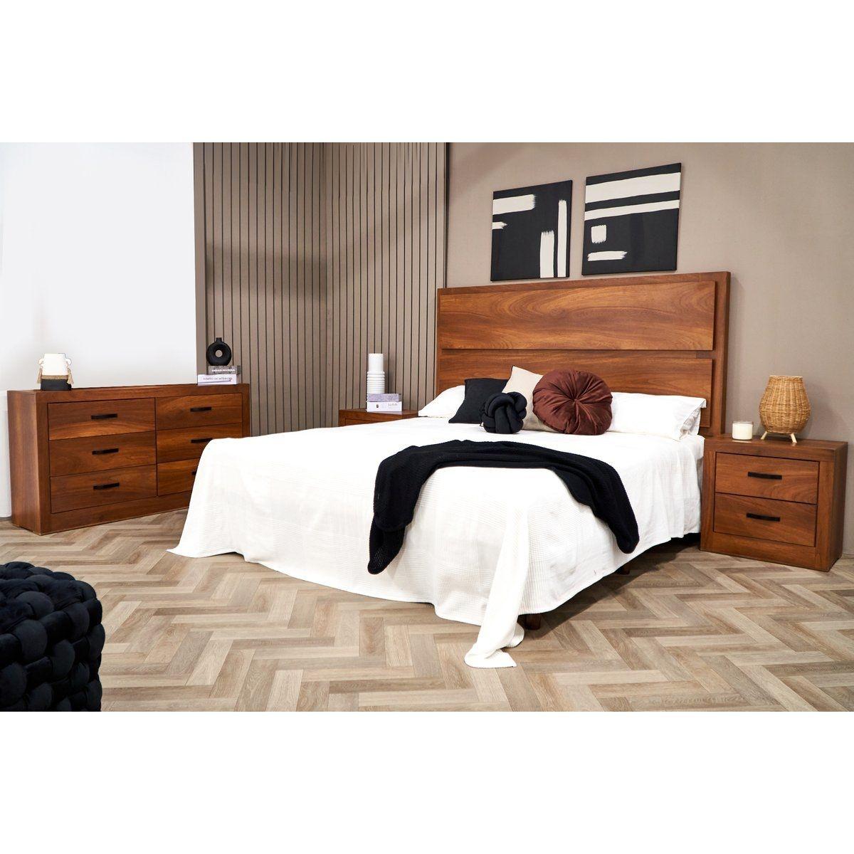 RECÁMARA KING SIZE DE 4 PIEZAS CON CABECERA, 2 BURÓS Y CAJONERA COLOR PAROTA - MELAMINA