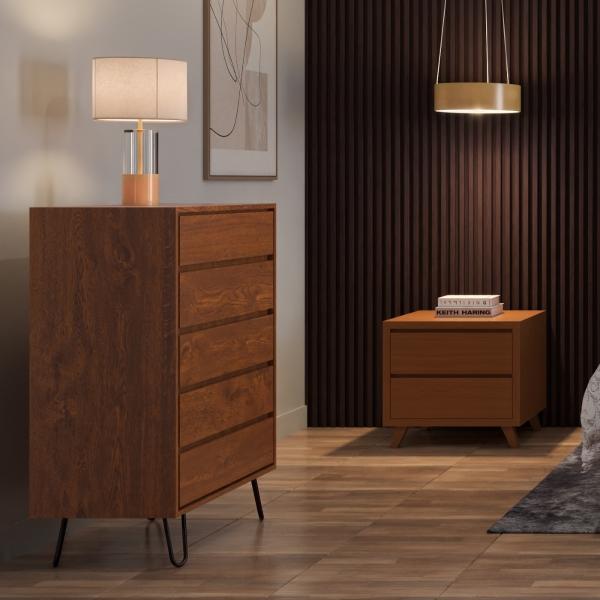 CAJONERA COLOR NOGAL DE 5 CAJONES CON PATAS DE METAL NEGRAS Y ESTRUCTURA DE MADERA INDUSTRIAL