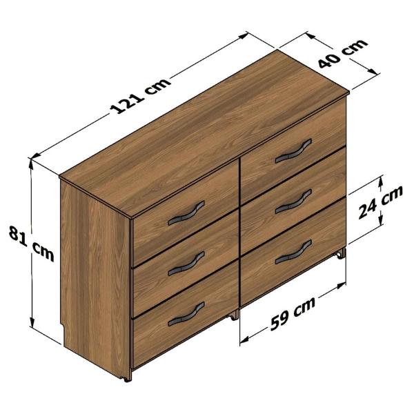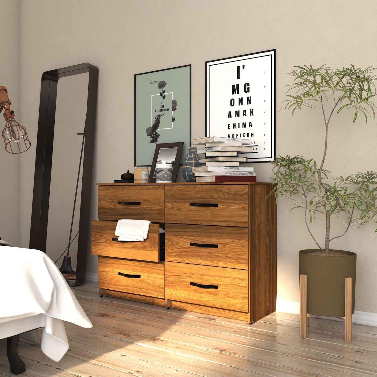 CÓMODA - PARÍS, 6 CAJONES AMPLIOS, CORREDERAS DE EXTENSIÓN Y JALADERAS METÁLICAS - COLOR TZALAM
