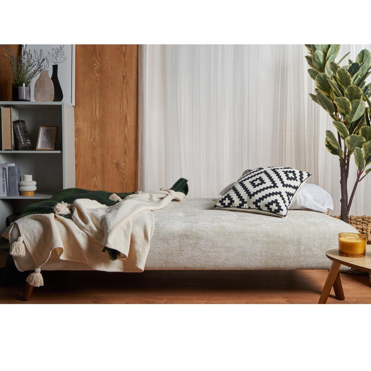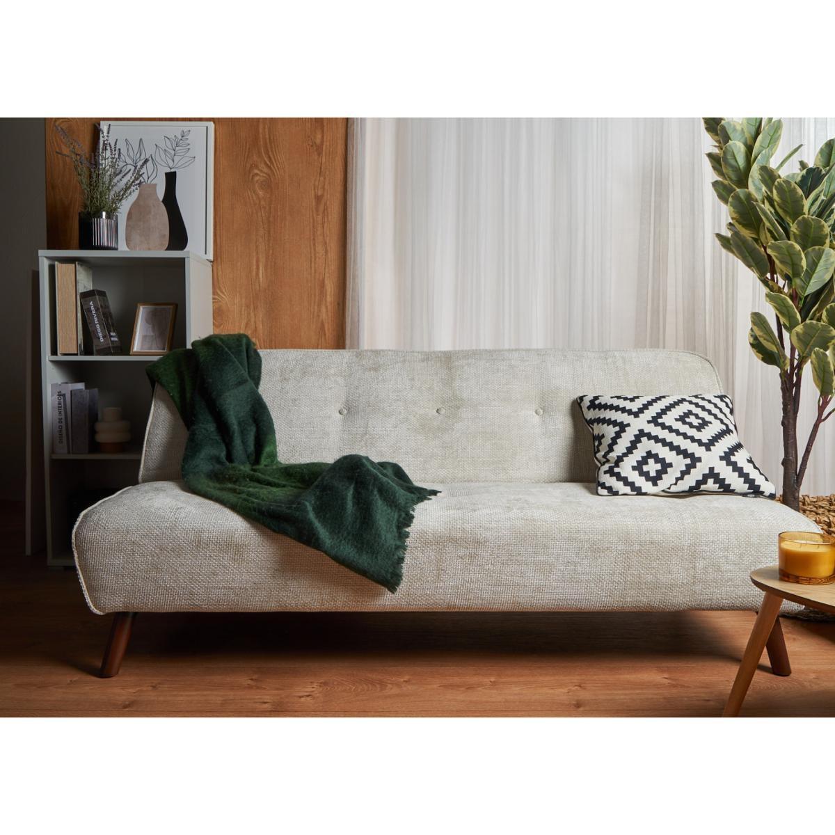 Sofá Cama Tapizado en Tela Suave Repelente al Agua Color Beige. Estructura de Madera Sólida