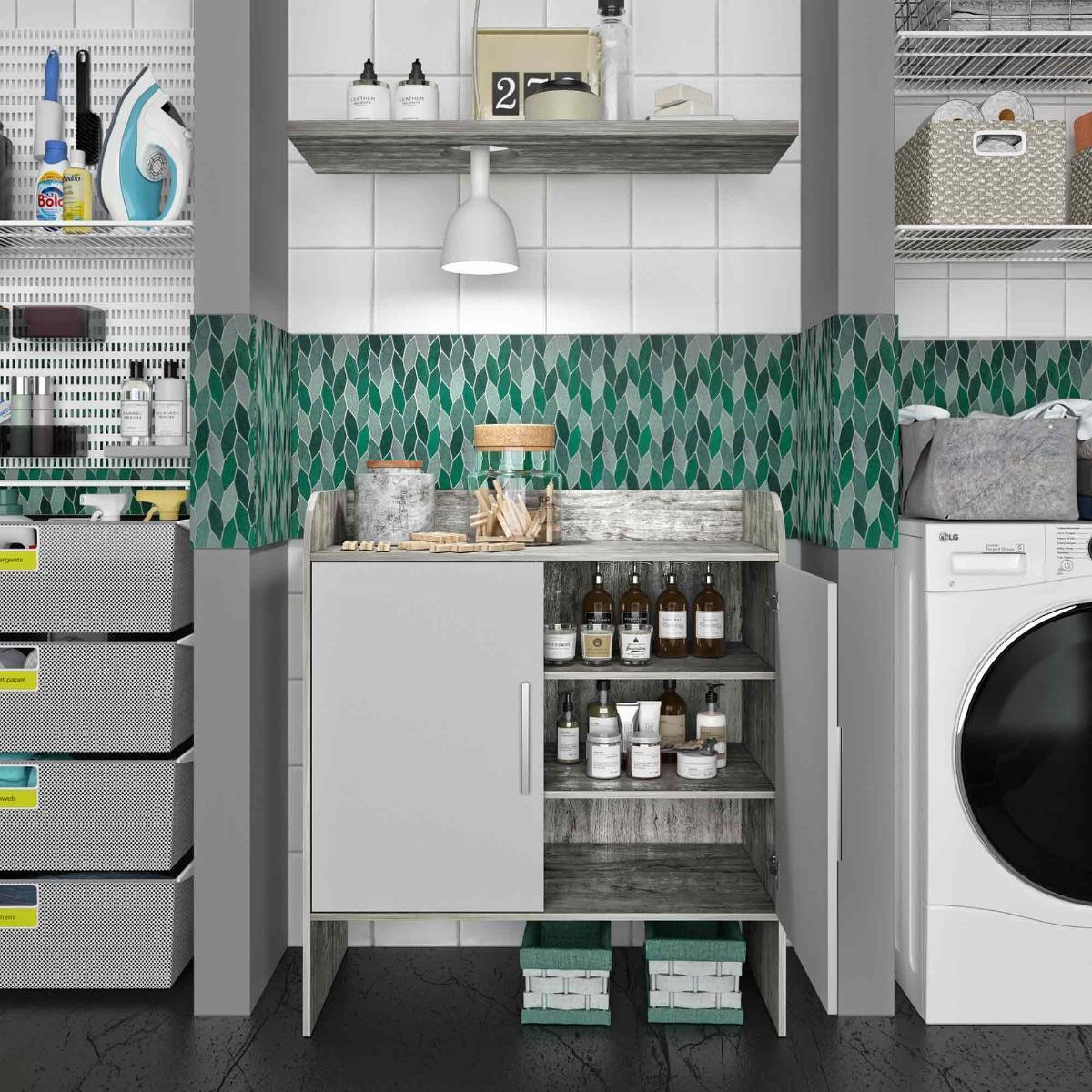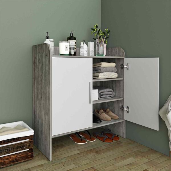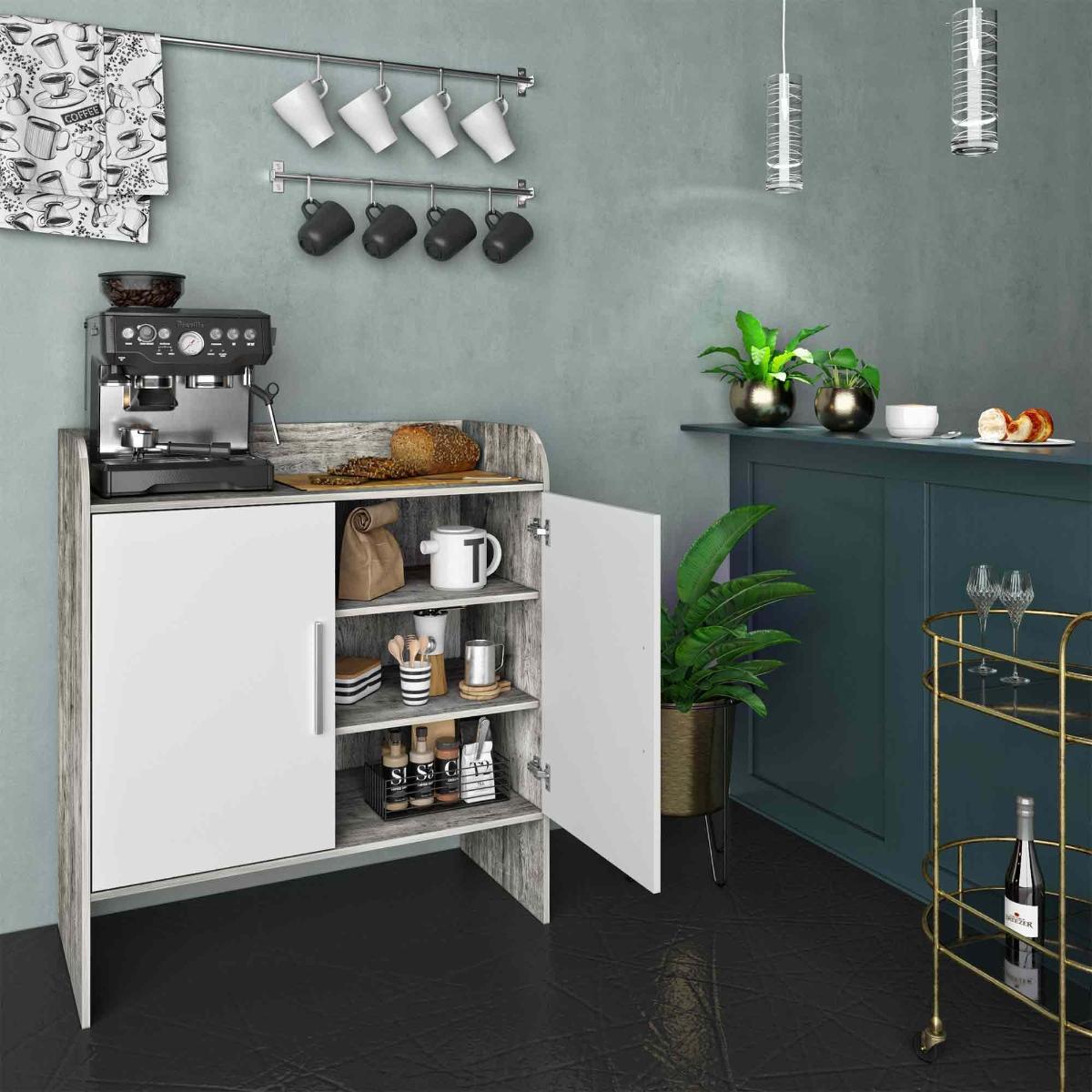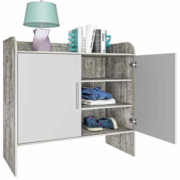 CÓMODA MULTIUSOS GRIS CLARO Y BLANCO