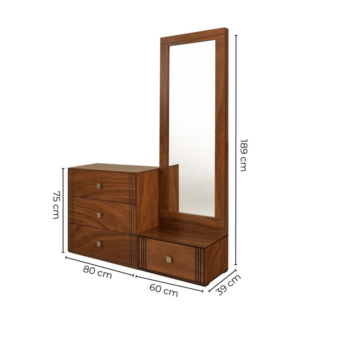 TOCADOR - CAJONERA CON 3 CAJONES Y ESPEJO DE CUERPO COMPLETO COLOR PAROTA - MADERA INDUSTRIALIZADA