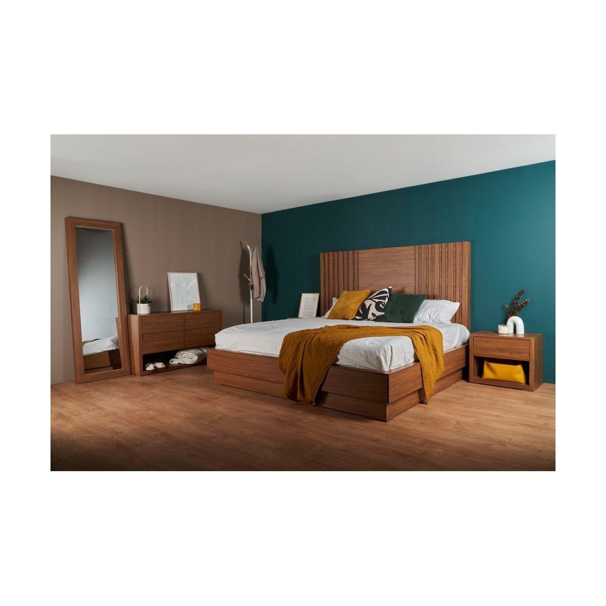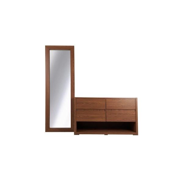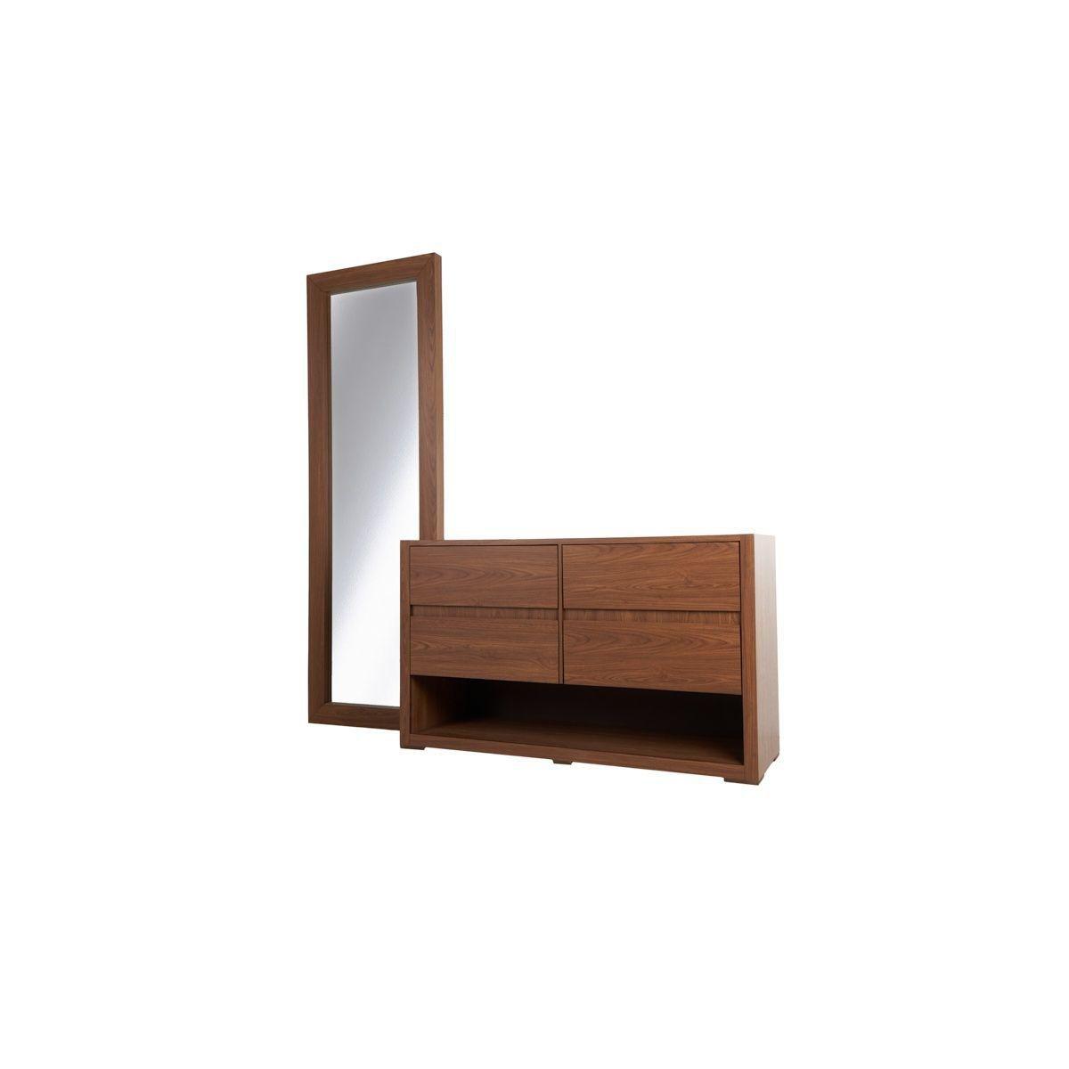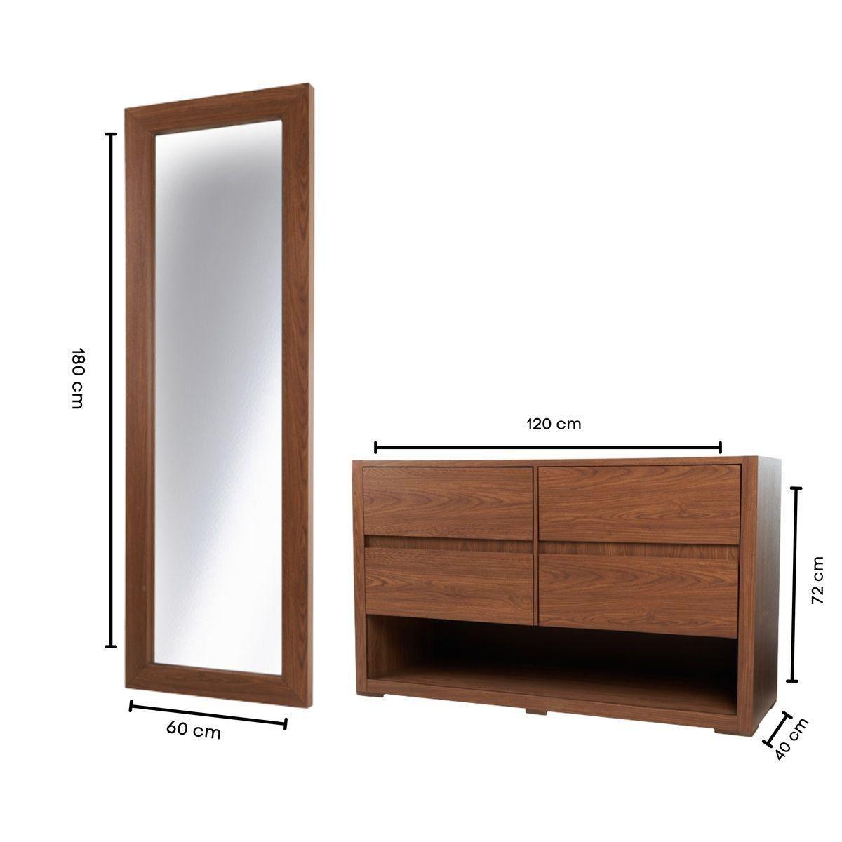 TOCADOR - CAJONERA Y ESPEJO DE CUERPO COMPLETO COLOR NOGAL - ACABADOS EN MELAMINA