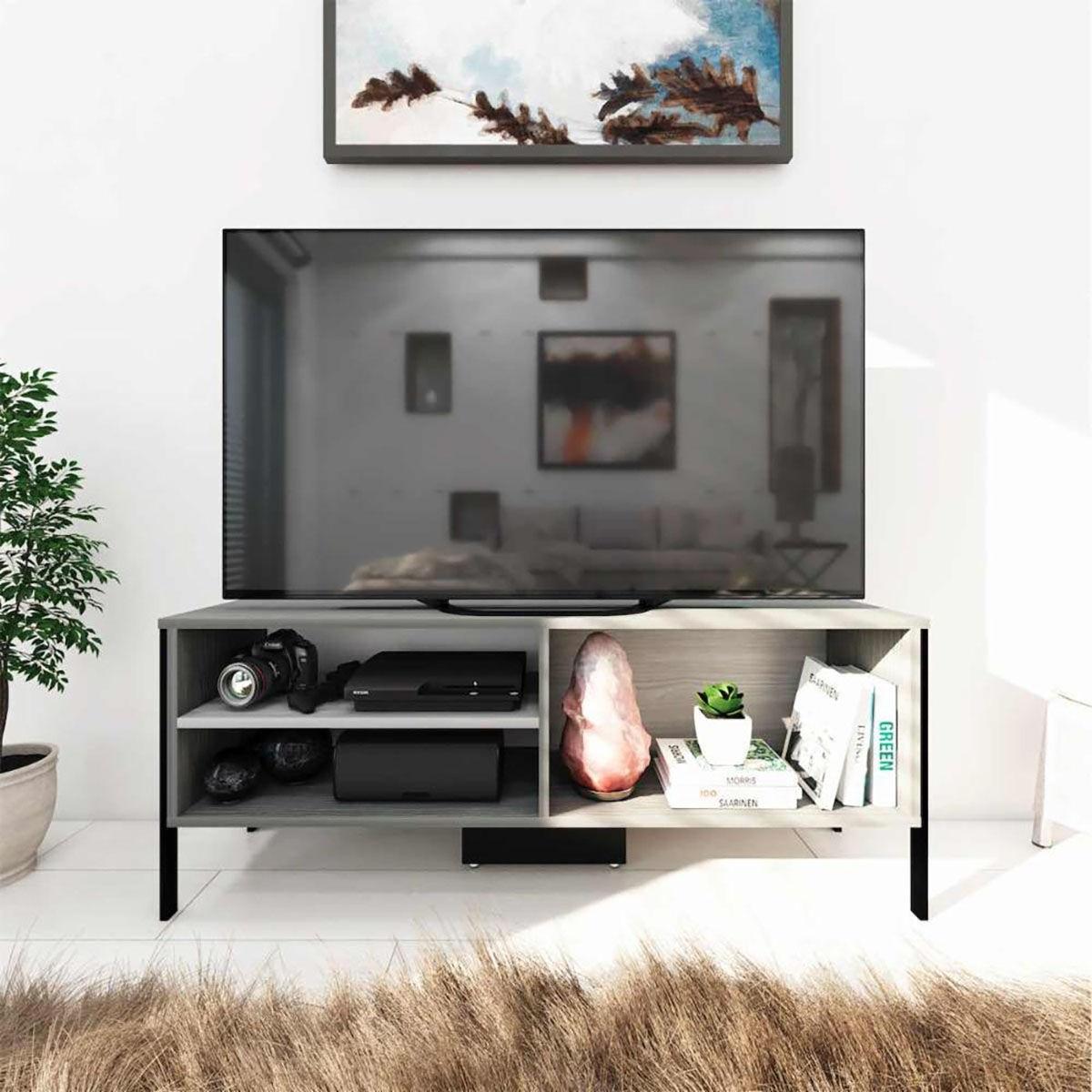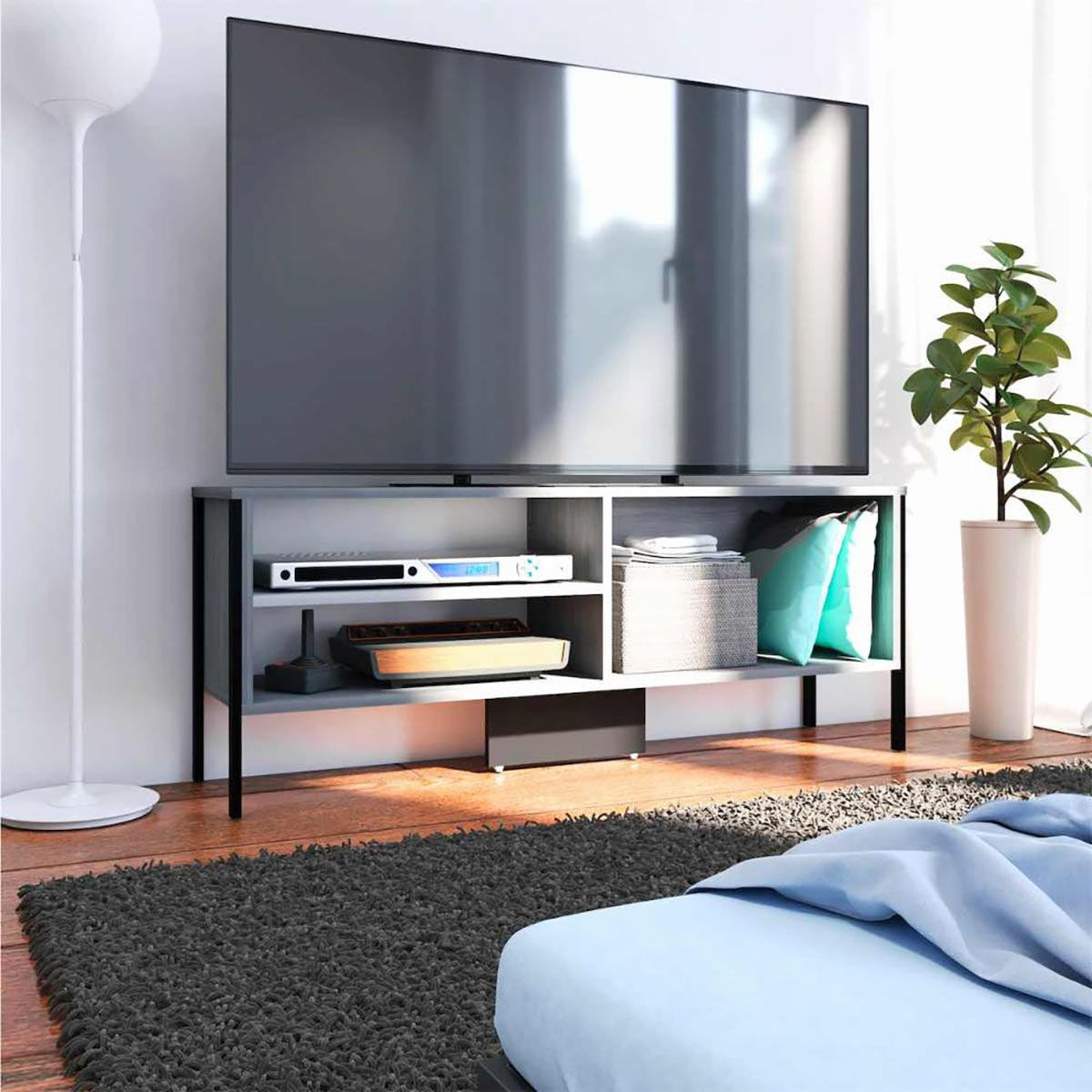 MUEBLE PARA TV 55" VIENA DISEÑO MODERNO ESTRUCTURA METÁLICA Y AMPLIO ALMACENAJE COLOR GRAFITO GRIS