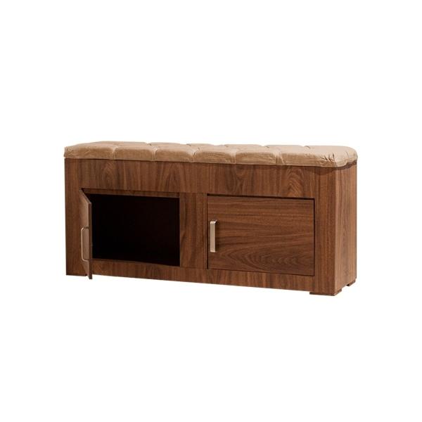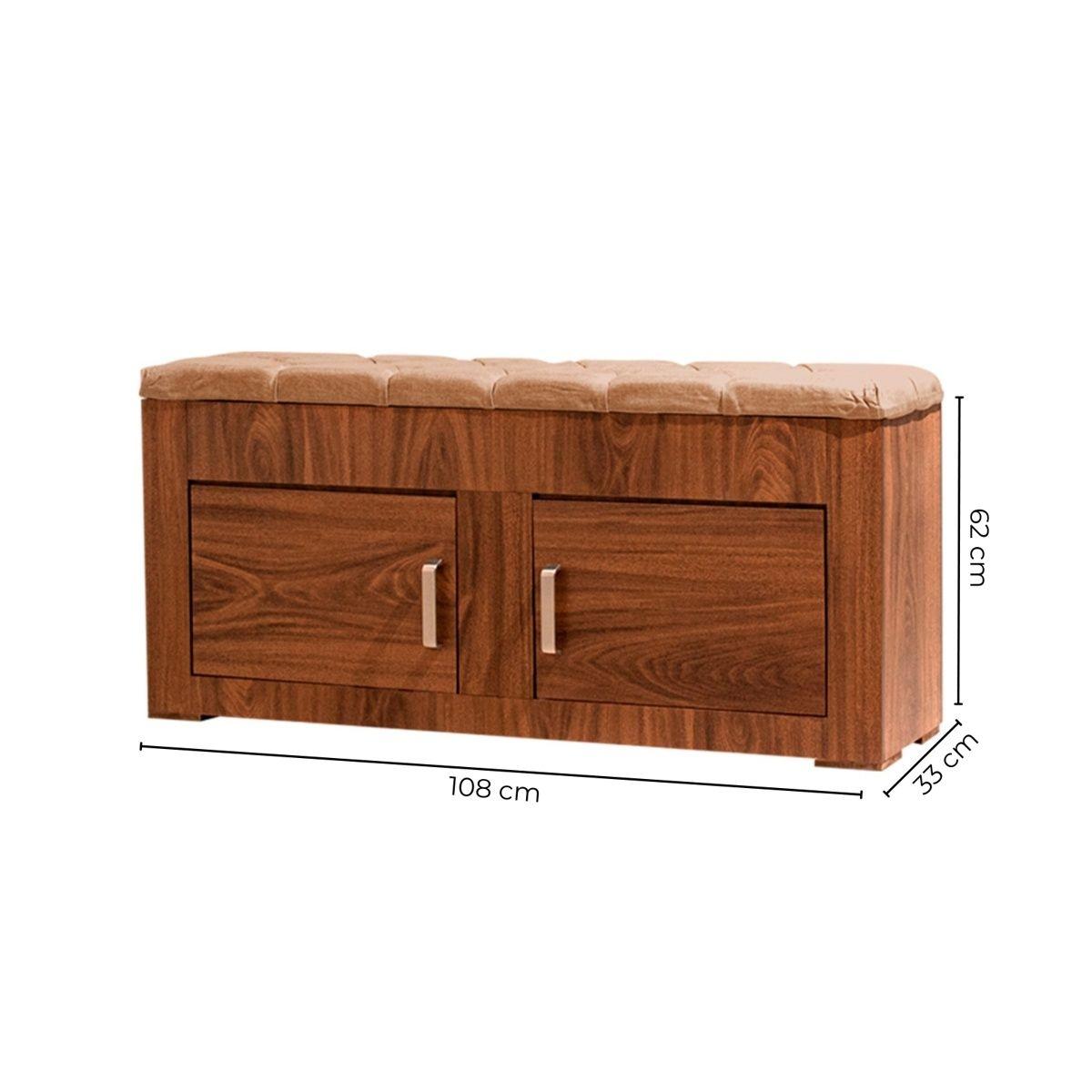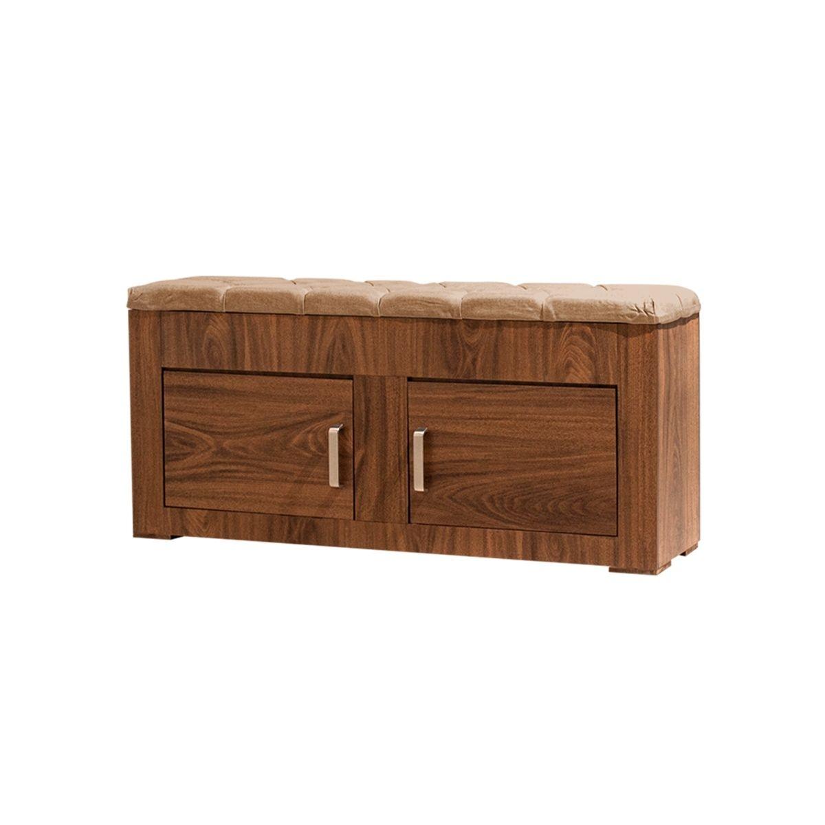 BAÚL - PIE DE CAMA CON 2 COMPARTIMENTOS Y BANCA TAPIZADA COLOR NOGAL - MADERA INDUSTRIALIZADA Y TAPIZADO